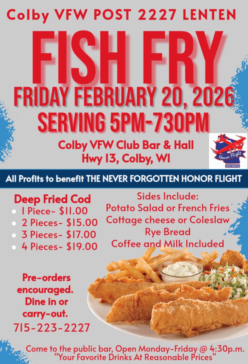 20 – Colby VFW fish fry for the NFHF, Colby VFW (POSTER)